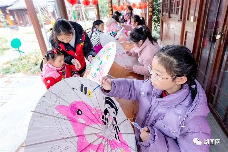 长兴县吕山乡吕山村文化礼堂,孩子们制作古风油纸伞。湖图 王徐超