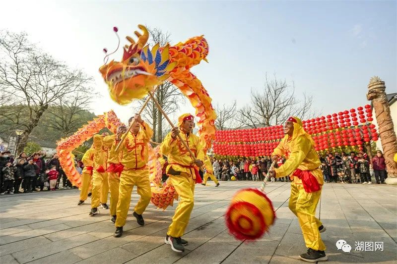 长兴县煤山镇乡村党建联盟开展元宵喜乐会活动,村民欢聚一堂,舞龙,舞狮,赏花灯,猜灯谜。湖图 吴拯