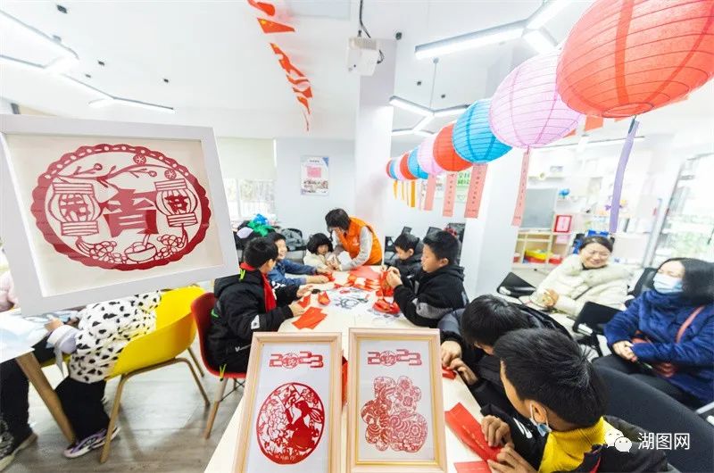 吴兴区朝阳街道潮音社区联合幸福邻里中心举办扎花灯猜灯谜、吃元宵等传统民俗活动。湖图 闵峰