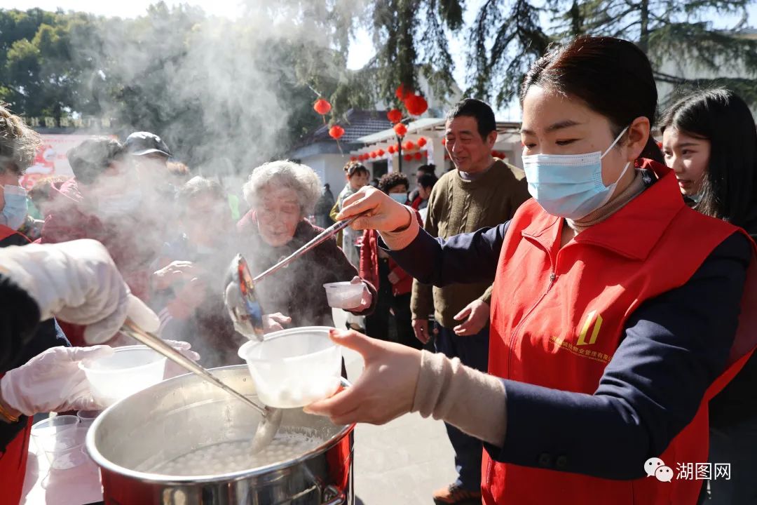 长兴县和平镇勤劳社区,党员志愿者给消防员、医护人员等送上汤圆、表演节目,共庆元宵。湖图 陆一平