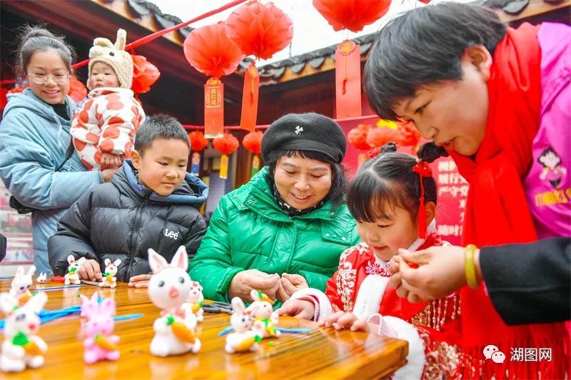 长兴县夹浦镇新时代文明实践所联合夹浦成校,巾帼志愿者与村民一起制作兔主题吉祥物。湖图 谭云俸