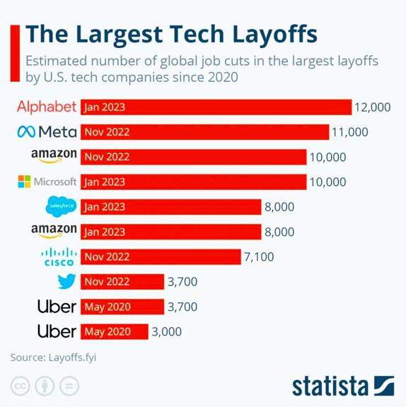 各大科技公司不断加长的裁员名单像滚雪球一样,越滚越大。