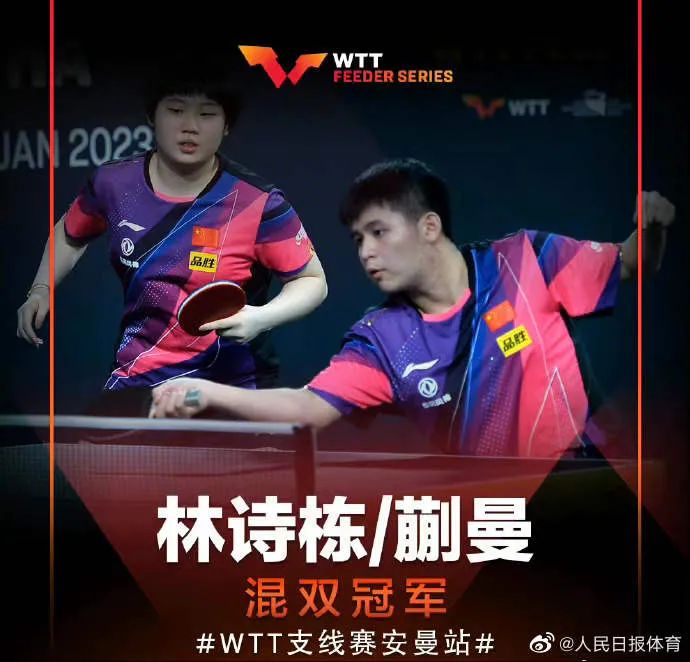 WTT支线赛安曼站2023,中国队包揽五项冠军:男单曹巍,女单蒯曼,男双林诗栋/陈垣宇,女双覃予萱/韩菲儿,混双林诗栋/蒯曼。