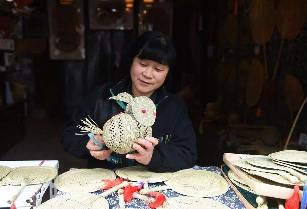 “岭根草编”的屋内,挂满了蒲扇、草帽、手提包等手工草编工艺品,淡淡的青草香,气氛温馨怀旧。来自上海的游客林婷,被精致的蒲扇所吸引,她买了一大一小两把扇子,准备一把送人,一把留着自己用。