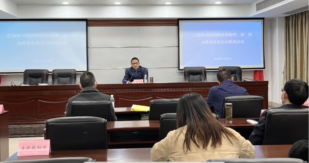春回大地万象新,奋楫笃行催人进。近日,江海区司法局和鹤山市司法局相继召开传达学习省、市、县(区)高质量发展和司法行政工作会议精神会议,深化认识,统一思想,围绕以高水平法治建设护航当地经济社会高质量发展谋篇布局,全面部署2023年依法治市(区)和司法行政重点工作,全力推动依法治市(区)和司法行政各项工作拔头筹、争上游,切实把法治建设“施工图”转化为推动经济社会高质量发展的“实景画”。