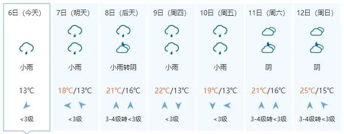 9-10日,阴天有分散小雨,偏东风转偏北风4~5级;