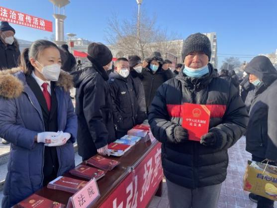 法律普法“现在网上立案是真便捷,省去了来回跑法院的时间,大大提高了办事效率,给我们群众省了不少事儿!”“同志,你们还有民法典吗?我在家也想学学法!”在活动中,孙吴法院结合“一城三区五基地建设”进行宣传,发放民法典、网上诉讼操作手册、合同类纠纷举证须知等与民生息息相关的普法材料,受到群众的广泛好评。同时,现场解答群众咨询的法律问题,以案释法,引得群众驻足听法、学法,为群众提供法律服务和法律咨询。