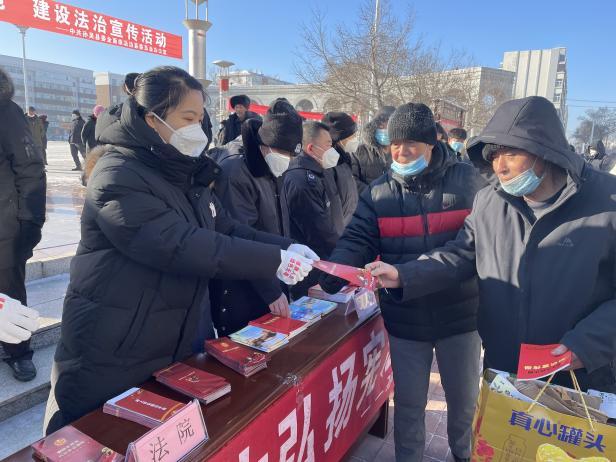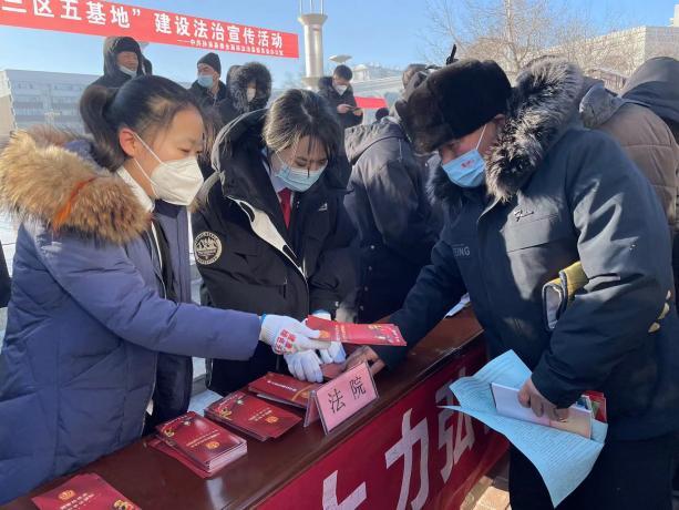为进一步提升广大人民群众的法律意识,营造我县浓厚的法治氛围,近日,孙吴法院干警来到人民广场,开展以“一城三区五基地建设”为主题的普法宣传活动。