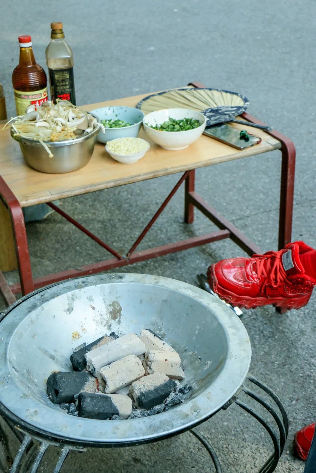 ·在街边烤火准备做菜的王姐王姐说,希望来宽窄巷子旅游的朋友,拥挤累了,可以来这条街上吃饭喝茶寻清净,感受老成都的生活节奏和韵味。