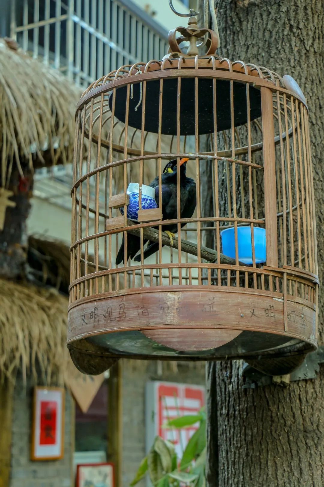 一旁的爷爷会亲切打招呼说着:“给我拍张照片涩,来一起喝茶”;某一棵树上,一只常驻于此、会用男中音说“你好”的鸟儿,更是赚足了来往的人的好奇心。