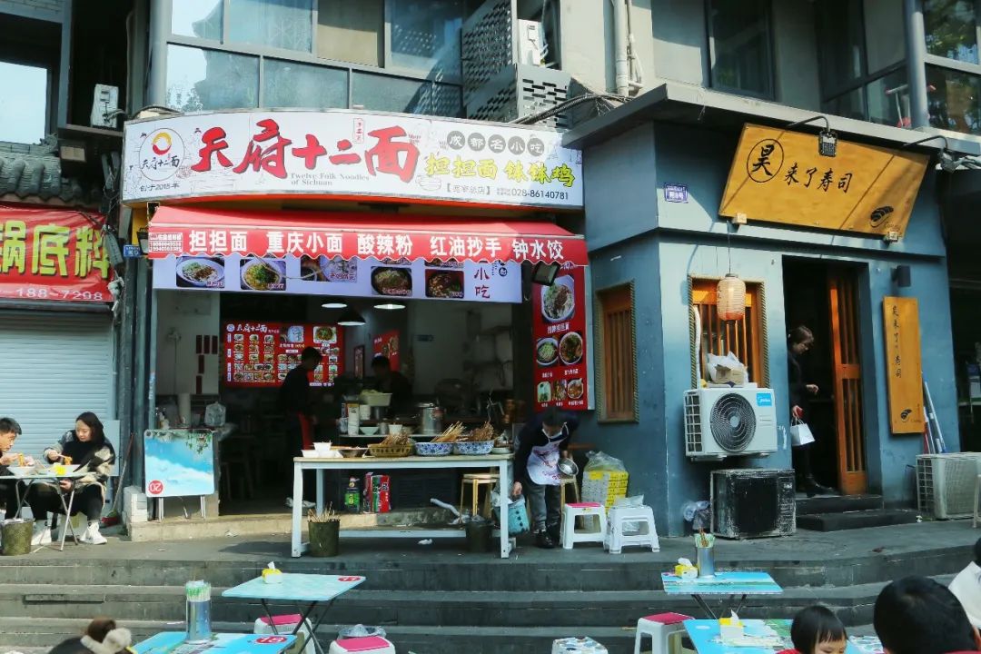 从没认真看过这家店的名字,以至于后来多次前去,都是凭着脑海里的坐标与记忆。只记得从宽窄巷子B口出,往前走两个路口就到了,似乎还是红色的招牌。这次去逛泡桐树街,才发现它的名字叫天府十二面。