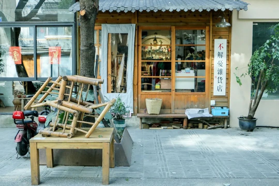 如商量好了一般,靠近景区入口一端的街道,有好吃的面店、精致的寿司店、面包店;越往里走,则是饮茶、饮咖、饮酒的地儿;走至街道最深处,一棵高高的泡桐树下,有充满生活气的自家杂货小店可以闲逛、聊天。