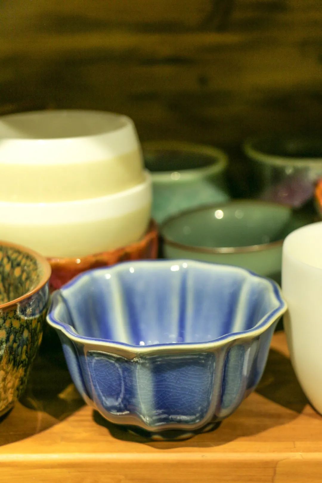 茶杯、茶壶大概是店里最吸引人的,不同风格,不同成色,全靠眼力挑,拿起、端详、放下、再拿起,好些客人一挑就是小半天,10多平的空间杂而不乱。
