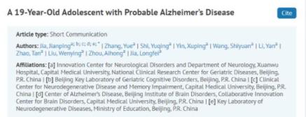 经多种检测方式发现,患者存在轻度脑萎缩,部分脑脊液指标异常,是迄今为止已被报道的符合AD诊断标准的最年轻病例。