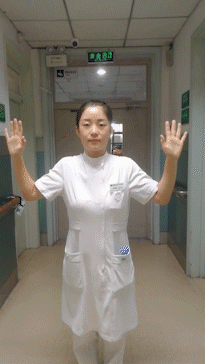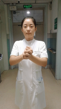 双手十指交叉握拳,顺时针转动