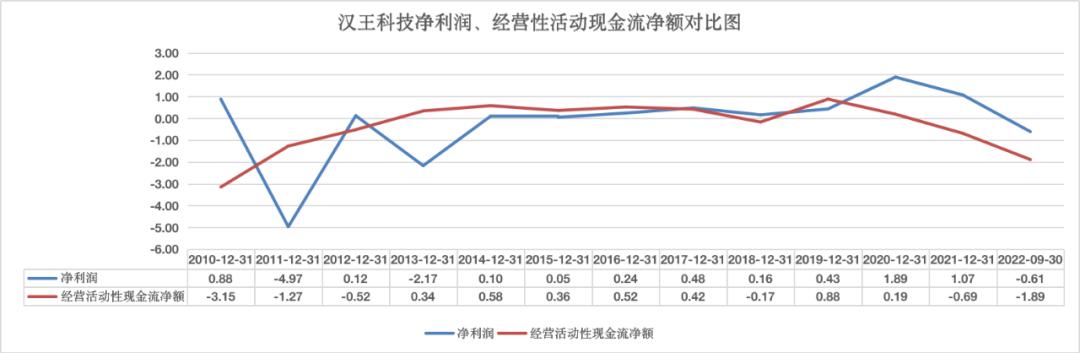 竞争加剧、上下游挤压,也切实影响到了企业的造血能力。2020年以来,汉王科技的经营性活动现金流净额持续小于净利润,2021年和2022年,这一指标更是跌入负值,显示企业造血能力明显不足。