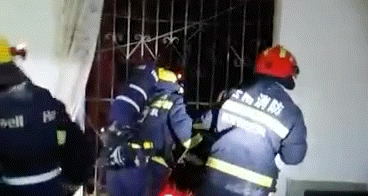 由消防员进入被困老人所处房屋