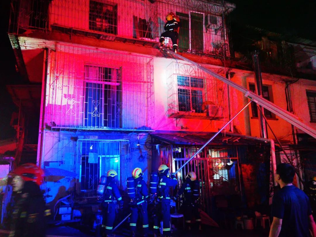 发现一栋三层居民建筑冒出火光