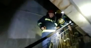 发现一名老人被困于三层房屋外铁栏处