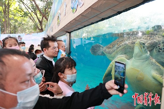 1月30日,广西壮族自治区南宁市,游客在南宁动物园观赏海龟。据文化和旅游部数据,今年春节假期全国国内旅游出游3.08亿人次,同比增长23.1%。中青报·中青网记者 谢洋/摄