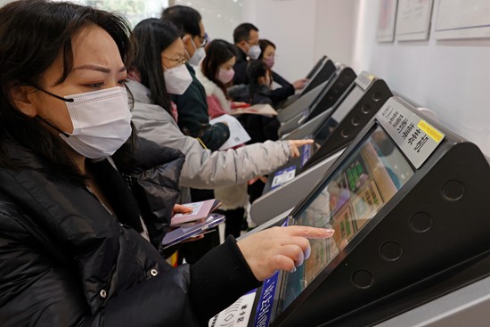 2月7日,北京市朝阳区六里屯社区卫生服务中心,餐饮、快递、家政等行业从业人员前来做职业体检。据国务院联防联控机制新闻发布会近日通报,目前全国整体疫情已进入低流行水平。全国的医疗机构陆续恢复常态化诊疗。中青报·中青网记者 曲俊燕/摄