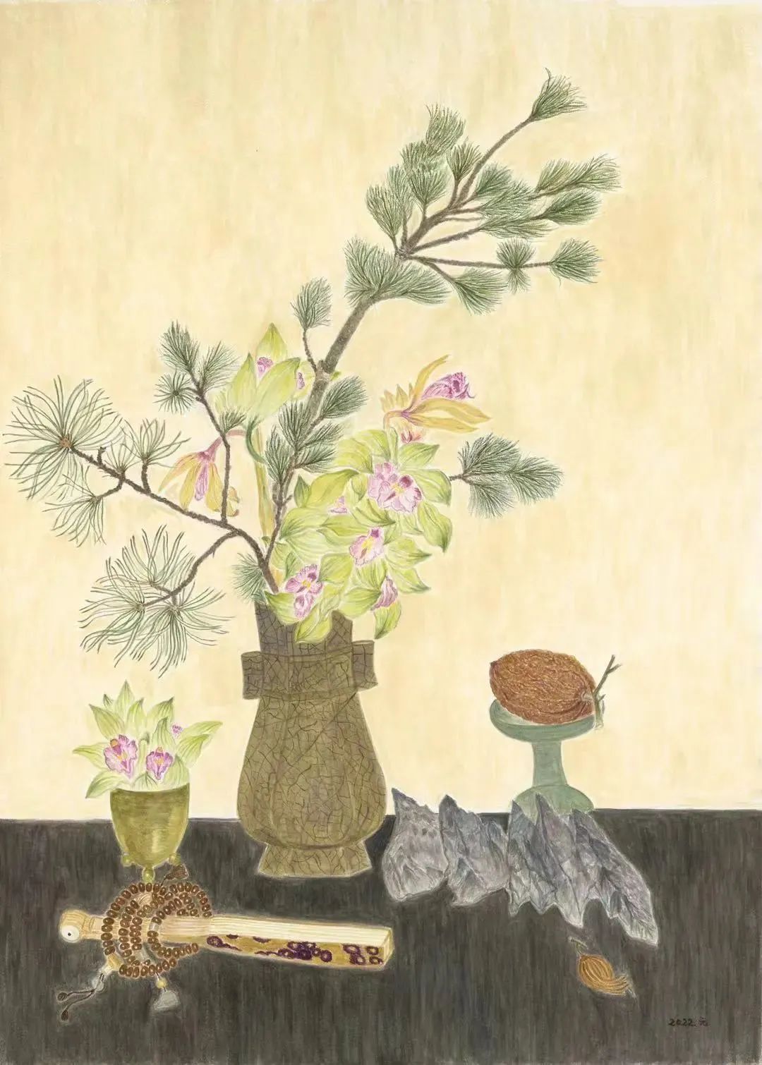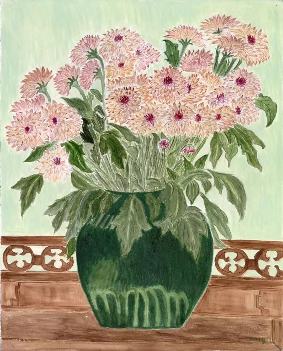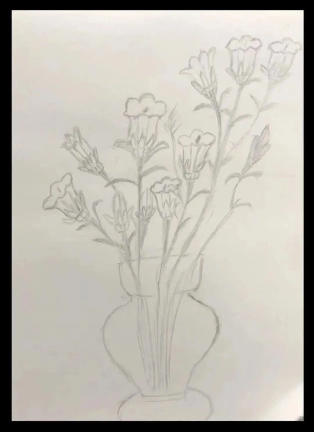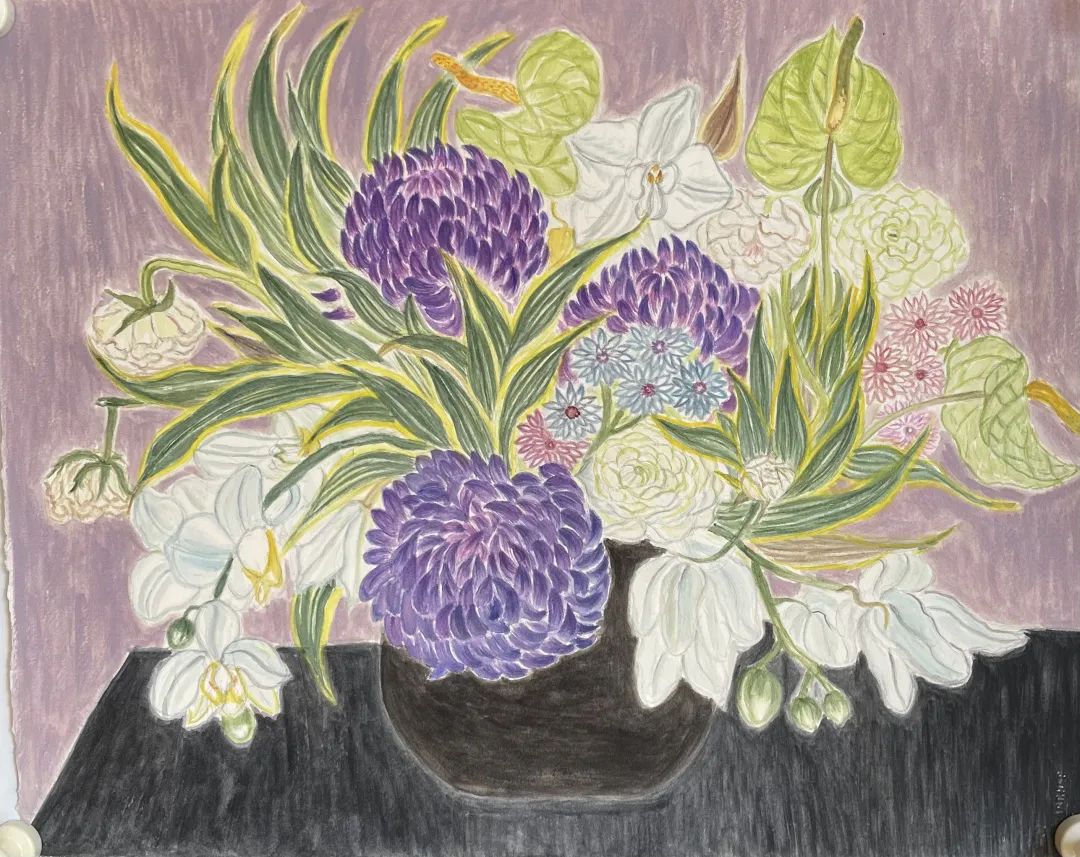 儿子让我试试看,从写生开始,把东西摆好就可以画。有一天他买了一束响铃草放在家里,我就试着画了花瓶和花,画起来一点感觉都没有,就把这幅画放在了抽屉里。