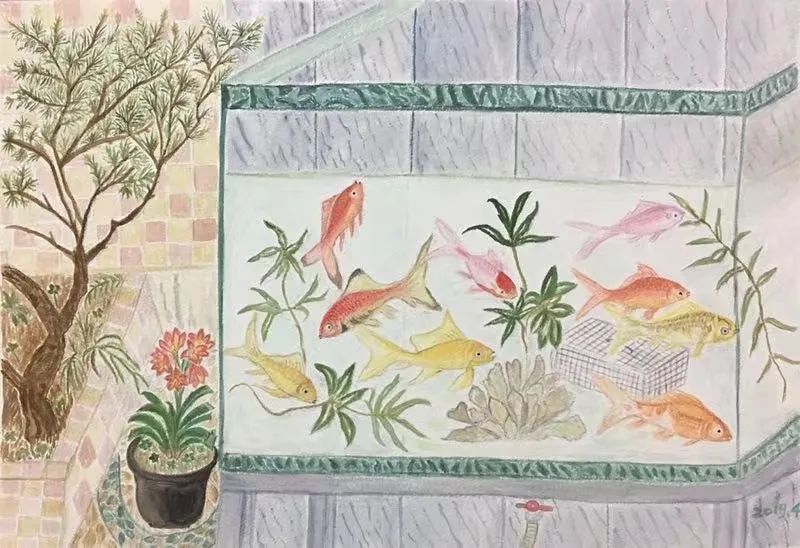 我一开始是用铅笔画,画了大稿10多幅。有一天看着家里的水彩,我试着加了上去。儿子看我画得特别兴奋,也画得挺好的,就发了朋友圈获得了很多人点赞,而我当时心里很不自在。