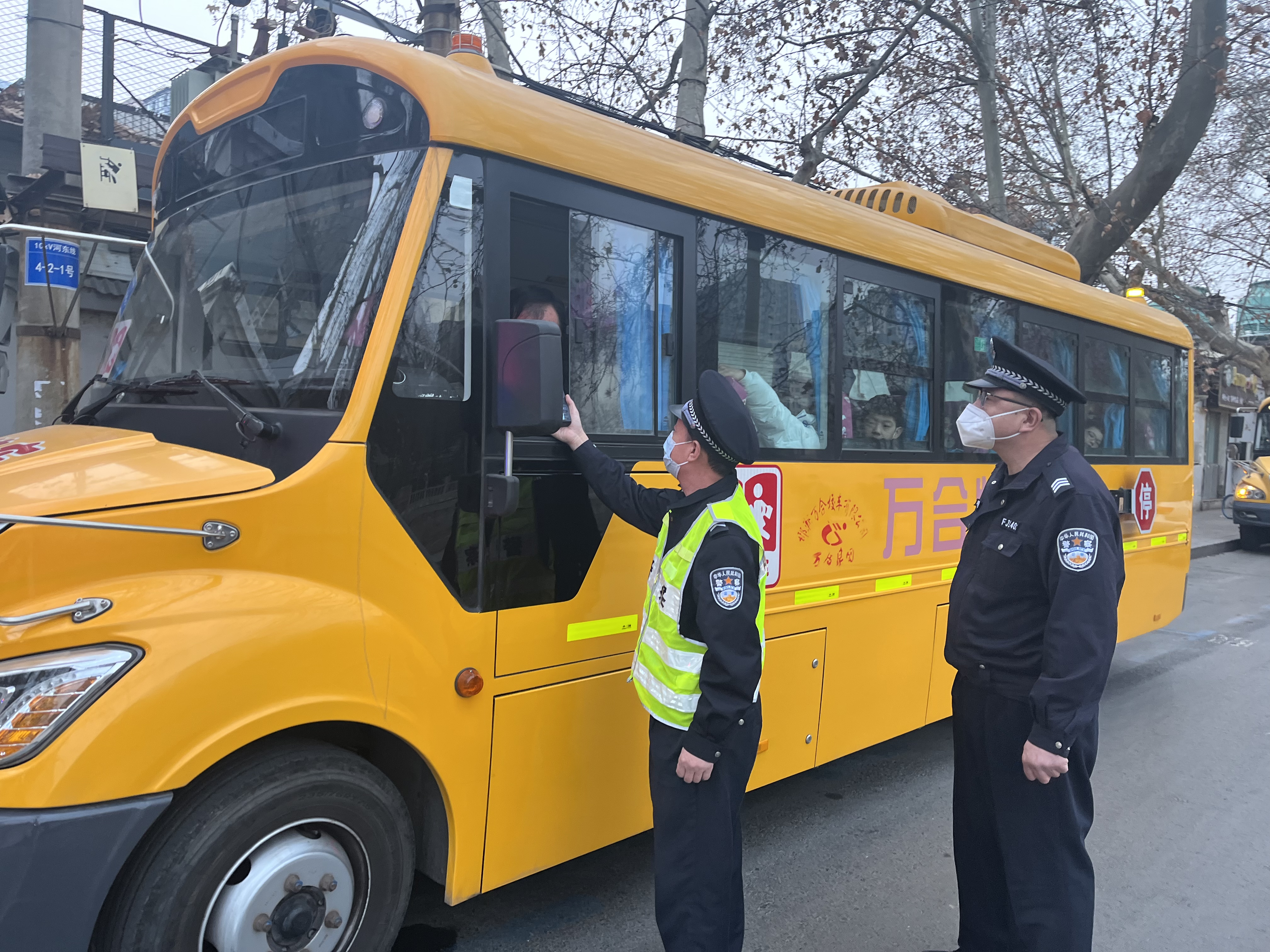 当前,邯郸市各学校、幼儿园均已开学,校车正式上路运营。为营造良好道路交通环境保障广大学生安全出行,及时消除校车安全隐患,连日来,邯郸市交巡警支队邯山一大队组织警力开展校车源头监管,同时在辖区校车出行较为集中的路段开展校车专项整治工作。民警现场对校车驾驶人进行酒精检测,核查其校车驾驶资质,并对校车卫星定位装置、逃生锤、灭火器等安全设备进行检查。对于校车超速、超员、不按照经审核确定线路行驶的、不按照规定在校车停靠站点停靠的和未运载学生上道路行驶使用校车标志灯的等交通违法行为,做到发现一起,处罚一起,始终保持高压严管态势,全力以赴为学生们打造平安求学路。