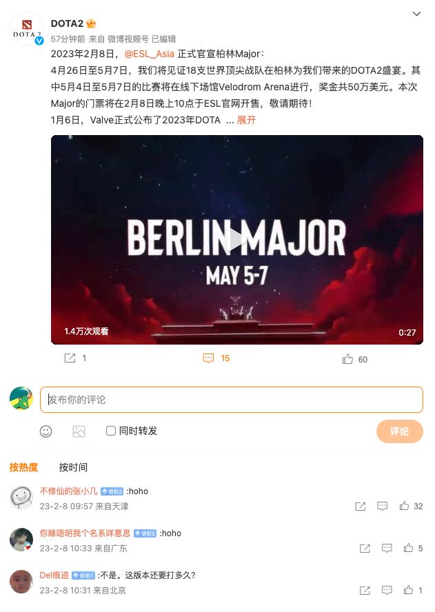 也有大量玩家在DOTA2官方微博的正常更新内容下接力发HOHO,不知是缅怀还是希望HOHO能看到他们。