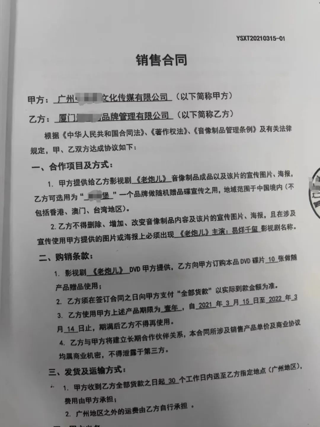 “我们也是受害者,我们也被人骗了。”被告之一的厦门某品牌管理有限公司辩称,自己在2021年3月与案外人广州某文化传媒有限公司签订了为期一年的销售合同,取得易烊千玺宣传图片的使用权,所以不能算是“侵权”。