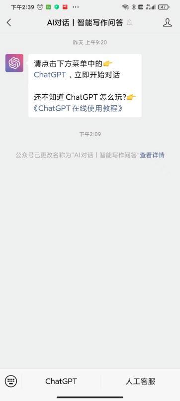 不过,从该公众号上添加的客服名称依旧是“ChatGPT在线客服”。该客服称,因为竞争被恶意投诉,公众号被迫改名。