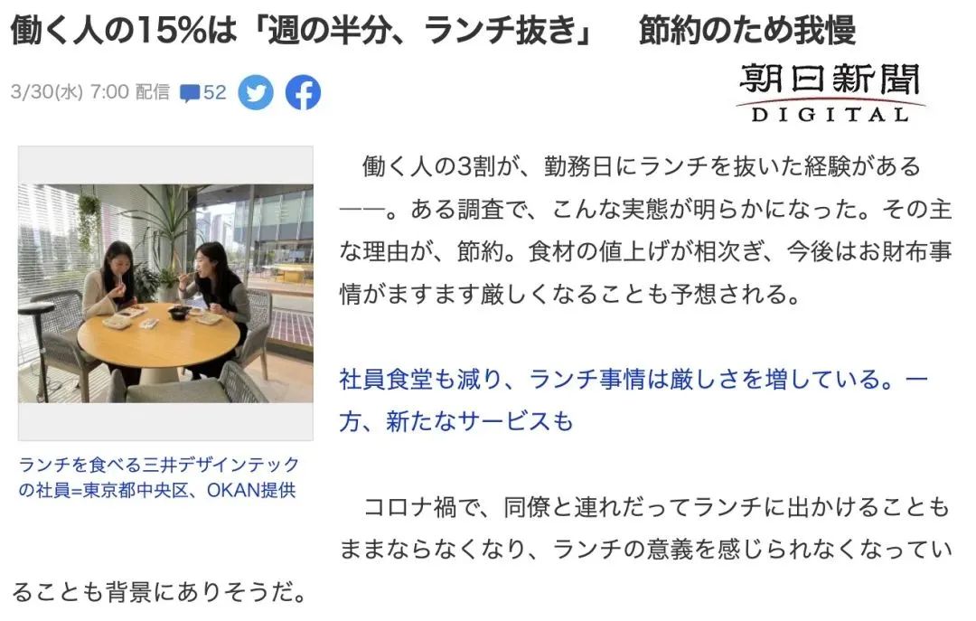 (某社交网络平台截图)比如日本的上班族:有30%的日本上班族都有过工作日不吃午饭的经历,并且居然有15%的人一周里有三天以上不吃午饭!