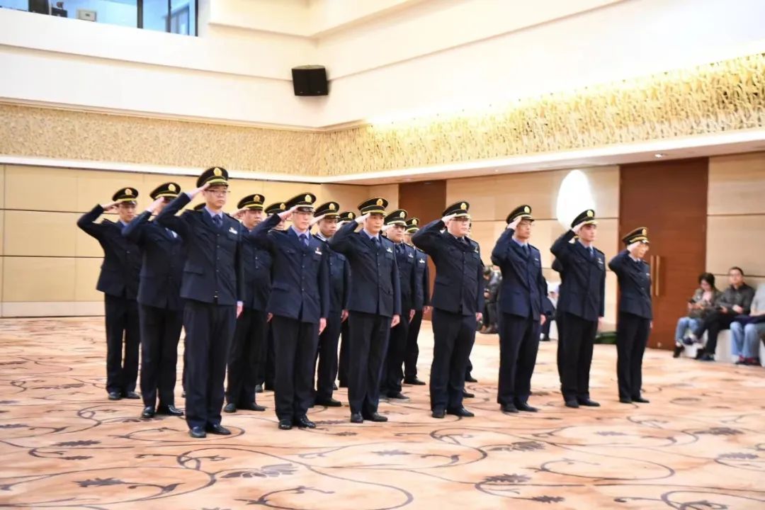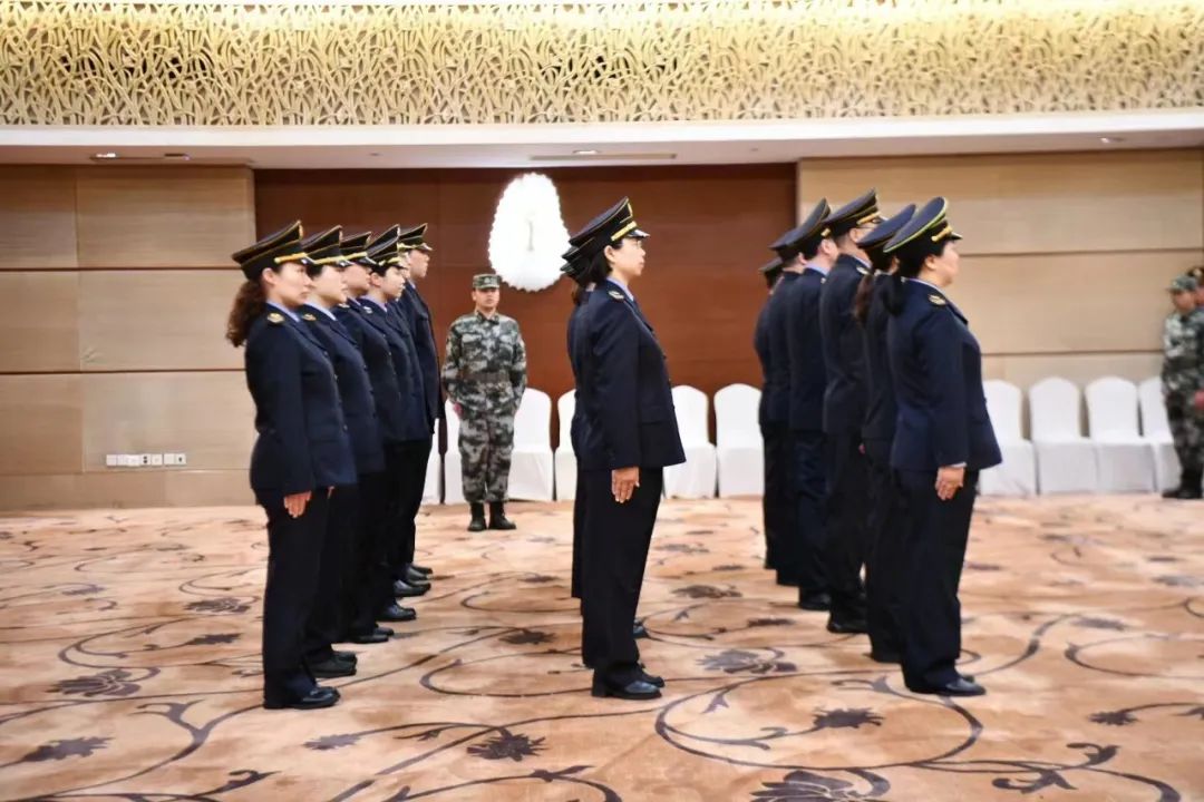 机动执法队正在进行队列展示,展示军训成果,接受领导检阅。“上海市卫生监督机动执法队集结完毕,请检阅!”口号高亢嘹亮,步伐整齐划一,身姿挺拔如竹,动作铿锵有力,新时代卫生监督员的飒劲儿和英气充分体现在了我们全体机动执法队员的饱满状态中,各队列展示出的气势恢弘磅礴,赢得阵阵掌声。