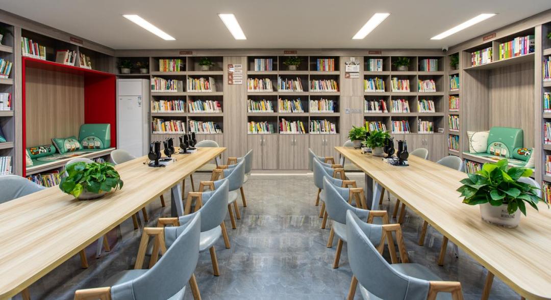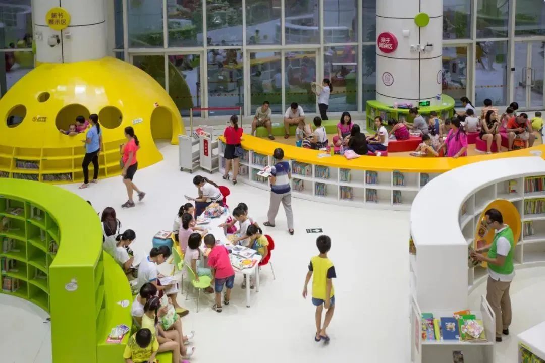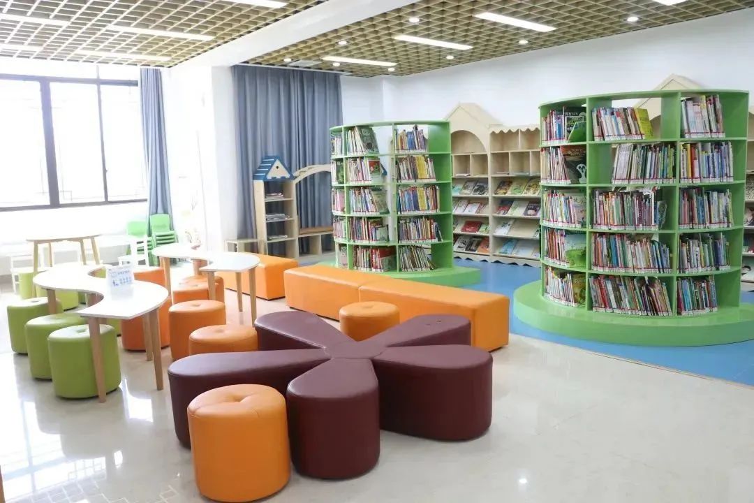 佛山市三水区北江社区智能文化家悦書馆场馆面积约1900平方米,其中少儿阅览区约460平方米,藏书30000多册,有阅览座席120个。儿童区藏书丰富多样,上至天文地理科学,下至古诗文学历史,种类齐全,成为社区内亲子共读的好去处!亲子共读