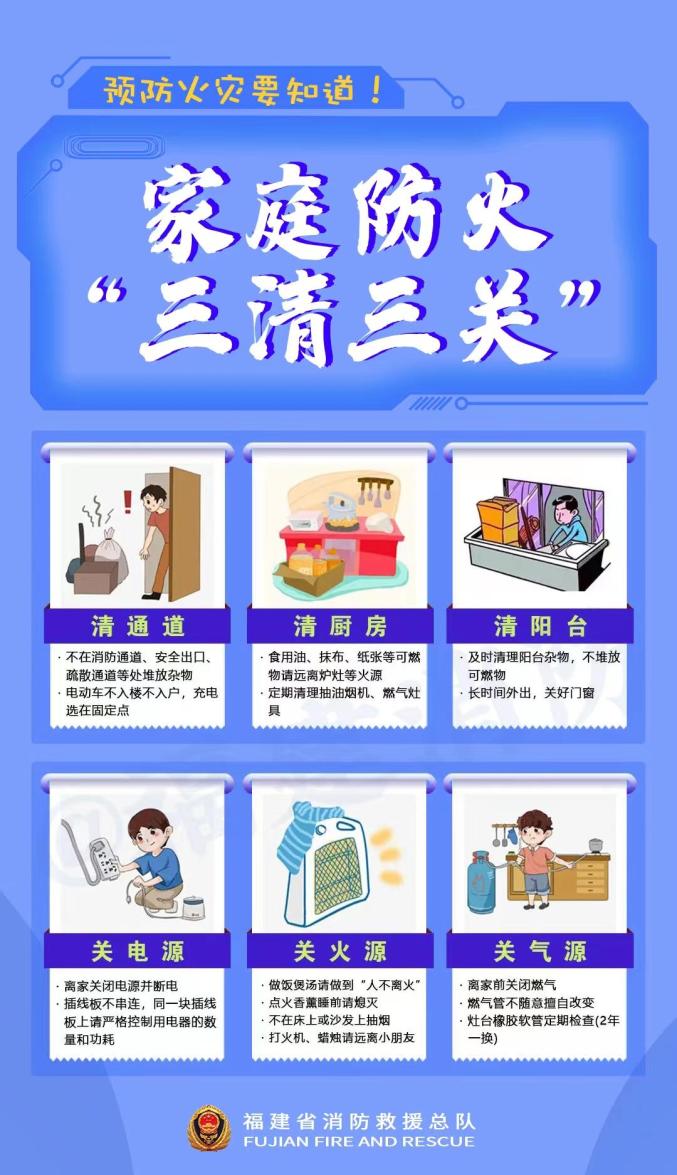 家庭防火需牢记“三清三关”为了您和家人以及邻居的