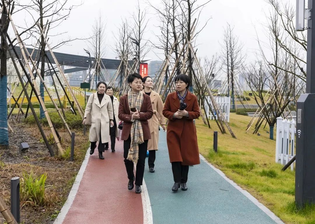 2023年2月10日下午,市妇联党组书记、主席俞泉云,市妇联党组成员、副主席沈纾丹等一行莅临北仑,就儿童友好公园建设工作进行调研和指导。俞泉云一行首先来到北仑凤凰公园,认真考察公园的建设情况,了解公园的管理运行机制、功能配置及下一步的建设规划等内容。