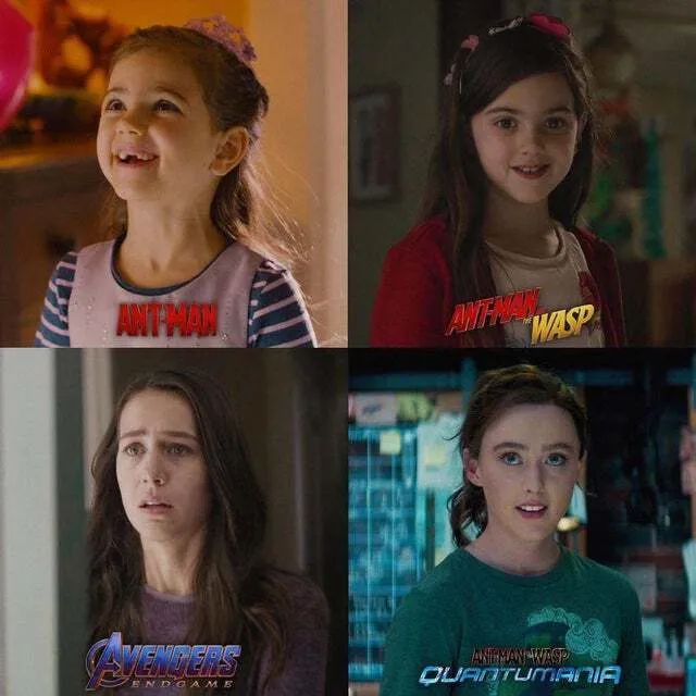 蚁人女儿凯茜在《蚁人1/2》(幼年版)和《复联4》(成年版)后,本片中第四次亮相。
