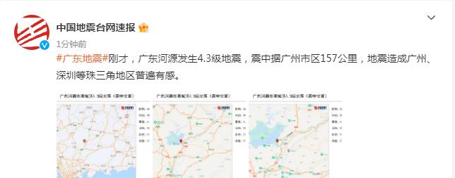 2月11日,河源市源城区发生4.3级地震。此前的2月5日,佛山市三水区发生3.2级地震。两次地震间隔不久,彼此是否有联系?