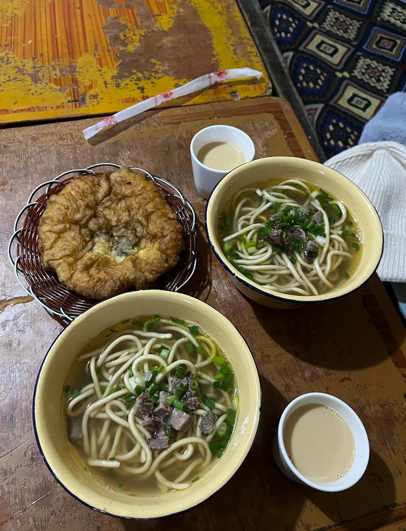 饮食方面,拉萨城区最多的就是川菜馆、火锅,茶馆,前两个因为四川、青海地区很多人在这边务工、做生意,所以口味上具备地区特色,后者则是本地藏族冬日严寒总是爱去茶馆喝甜茶,吃藏面跟炸薯条。所以饮食上不算丰富,选择很少,个人比较喜欢的是藏面,是青稞做的,味道很香,如果是爱吃乌冬面的人,应该会很喜欢。