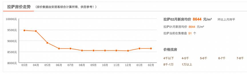 至于房价,对比其他自治区或者省会城市,拉萨的房价可谓是相当亲民了,没有破万,都在8000~9000这个区间波动。