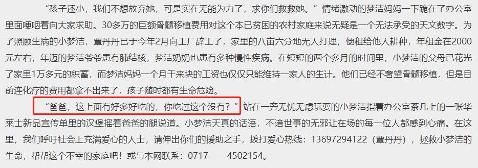 而“华莱士文学”中最触动人心的部分,则往往来自于那些纯真孩童的视角。十几年前,即将面临残酷疾病折磨和巨额医疗花费的小梦洁,尚无忧无虑的她指着华莱士新品传单上的汉堡问:“爸爸,这上面有好多好吃的,你吃过这个没有?”