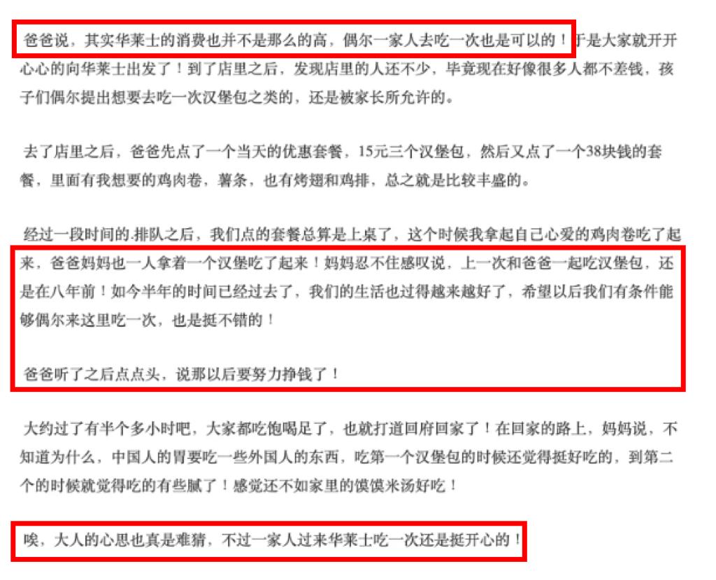 一位小朋友和家人去吃华莱士的记述里,童稚见闻中夹杂着许多温暖而酸涩的生活信息。