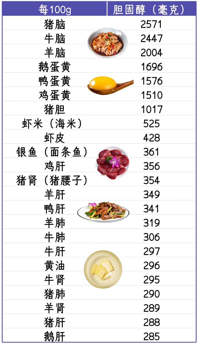 已经出现高血脂的人,嘴巴必须当好“守门员”。高血脂患者往往代谢系统已经出了问题,这类人群胆固醇摄入量每天应该限制在300mg内,像上面表格中靠前的食物,能少吃就少吃点。