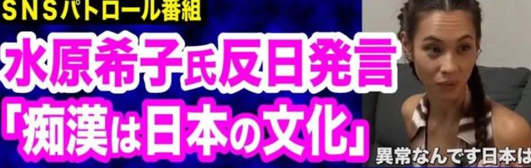 当然,日本本国人肯定不愿承认。就比如,去年8月,混血名模水原希子在一档网络综艺上发言称:“痴汉是日本独有的文化。”