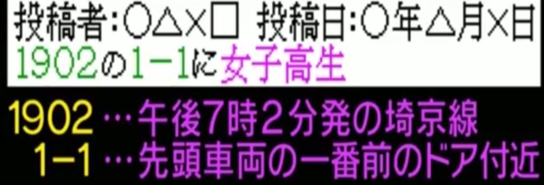 据报道,这四名痴汉都是一个叫“性骚扰经历告白”讨论版的浏览者,因为该版上面的一句“1902最赞”而相聚在了那一天19:02分的埼京线列车上,组成了一支临时的痴汉军团。