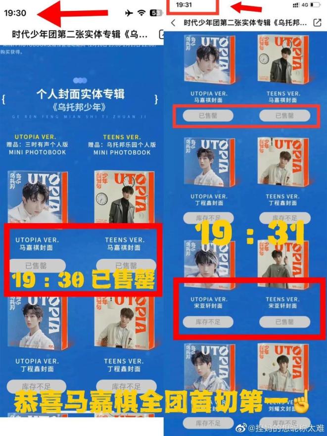 何为形势严峻?为什么一定要借款买专辑?原来,2月10日晚,时代少年团第二张专辑正式发布,专辑设定有14个版本,7位成员每人拥有两种封面,这种设定客观上刺激了粉丝之间的比拼,导致一些粉丝集资购买专辑帮艺人冲销量,甚至不惜以“预支资金”的形式,超出自身能力进行购买。据娱乐大V统计,开售后,该专辑10分钟内销售额破亿,更于当晚即引发不同成员粉丝之间的“秒切”之争:马嘉祺、宋亚轩、刘耀文粉丝都认为自己家的单封专辑最先卖空,在社交平台争执得不可开交。