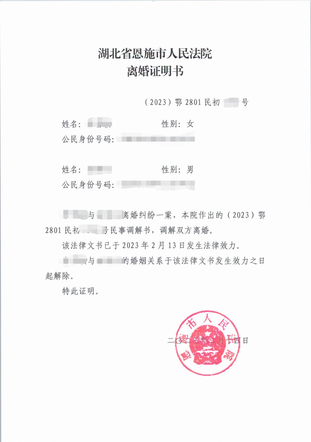 我为群众办实事|恩施市法院发出首份“离婚证”
