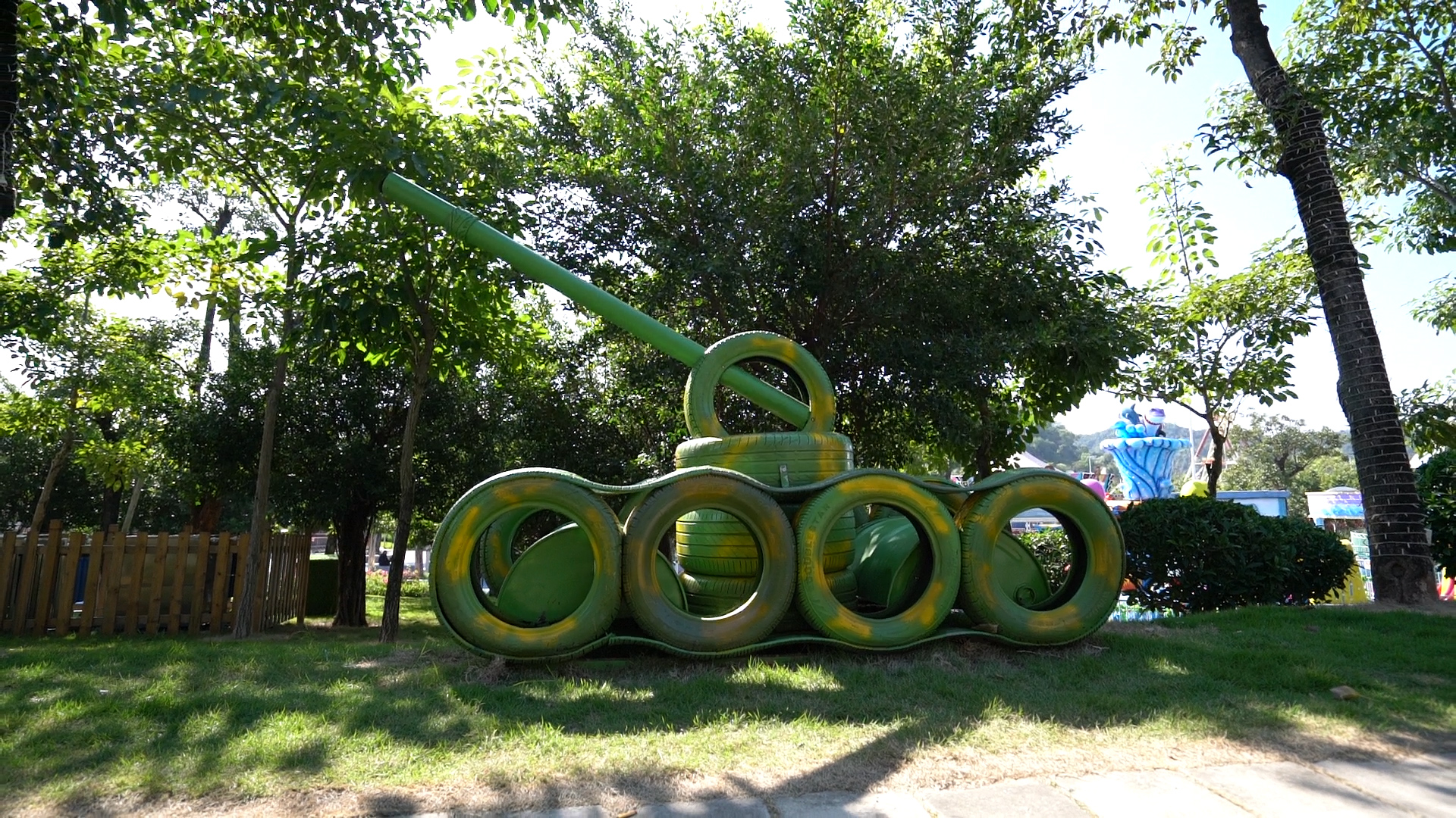 四色跑道两侧分布着知识科普区、趣味互动区、分类打卡区等功能区域,知识点满满的科普列车,棒棒糖形状的字母座椅,可以拍照打卡的“萌宠”雕塑......垃圾分类主题公园将垃圾分类知识以寓教于乐、寄学于景的方式融入到群众生活中,让群众可以准确地将垃圾“对号入座”,有效增强了周边居民的垃圾分类意识,营造出人人参与分类、共同守护生态文明的绿色环保氛围。同时,令人耳目一新的还有点缀在草丛间的变废为宝区,由旧轮胎制作的坦克、跷跷板、滑滑梯等设施,生动践行着西区垃圾分类、变废为宝的理念,不仅成为了观景设施,让公园颇具趣味,还引发人们重新思考源头减量生活方式的重要性,理解垃圾分类的重要意义。