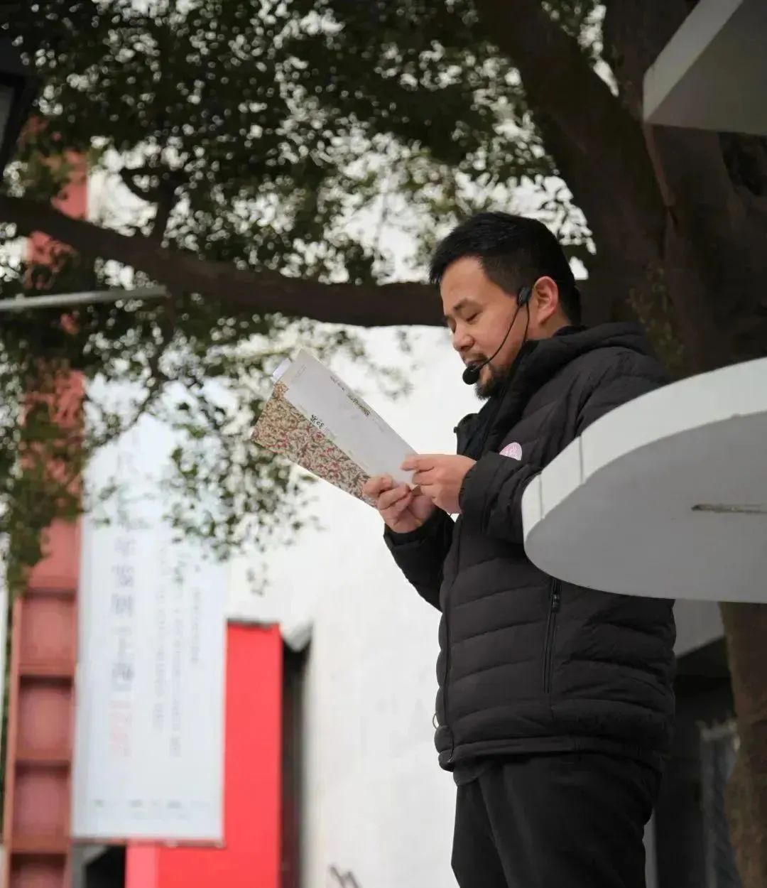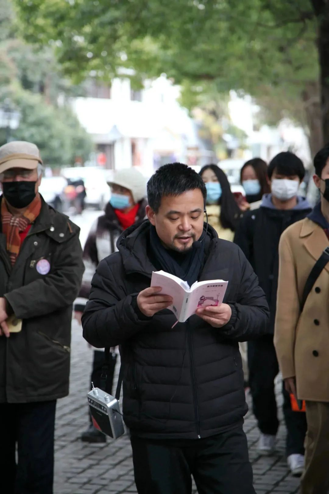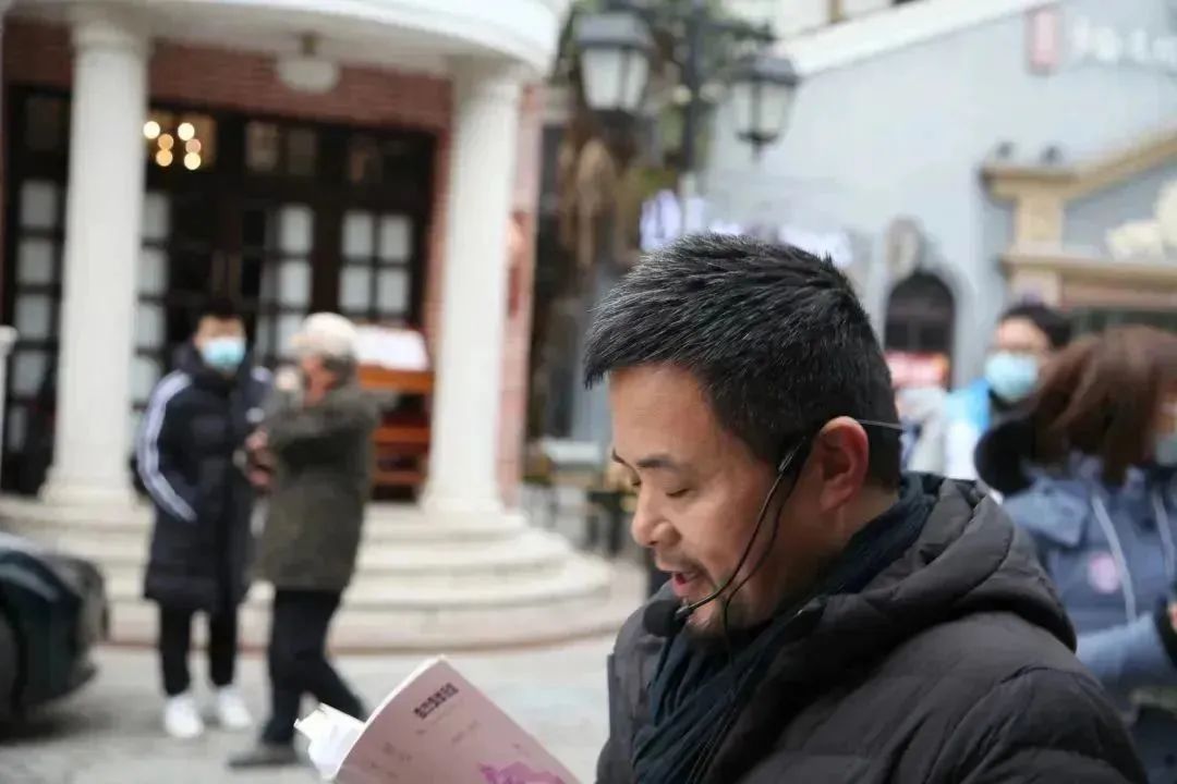 2月14日,虹口区新时代文明实践中心、虹口区新时代文明实践志愿服务总队联合上海多伦现代美术馆组织开展“与艺术家一起行走多伦,朗读爱情”志愿活动,曹再飞带着爱情诗歌来到甜爱路和多伦路,边行走边朗读,践行一场冬日的浪漫。