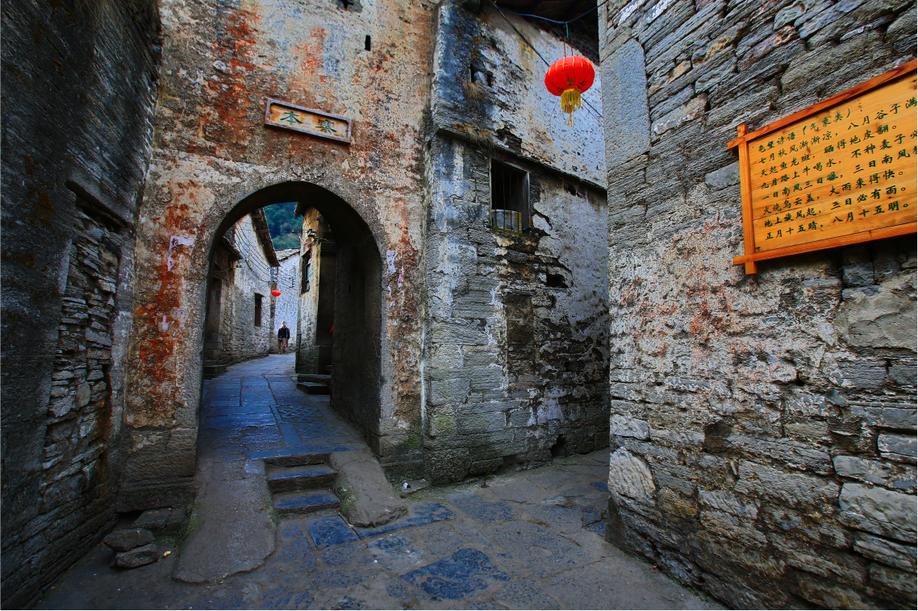 在本寨,每家每户都是自成体系的封闭式“合院”建筑,石头巷子把每家每户连成一体。户与户有暗门相通,家与家有高墙相连,形成布局严谨、主次有序、结构坚固、易于自守的格局。
